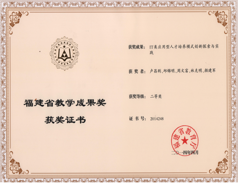 IT类应用型人才培养模式创新探索与实践获福建省教学成果二等奖
