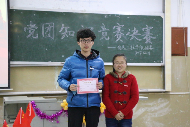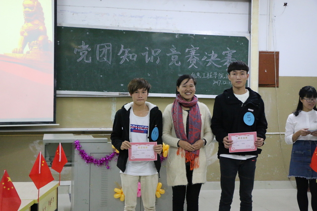 为使同学们认真学习领会党的十九大精神的核心要义和精髓,真正把党的十九大精神内化于心、外化于行,牢记党的重大历史事件,信息工程学院举办了以“学习党的十九大,贯彻新思想”为主题的党团知识竞赛。12月11日晚,竞赛于理工三403拉开了序幕。信息工程学院团委书记王晶,辅导员杨章萍和刘友武老师出席了本次的知识竞赛。