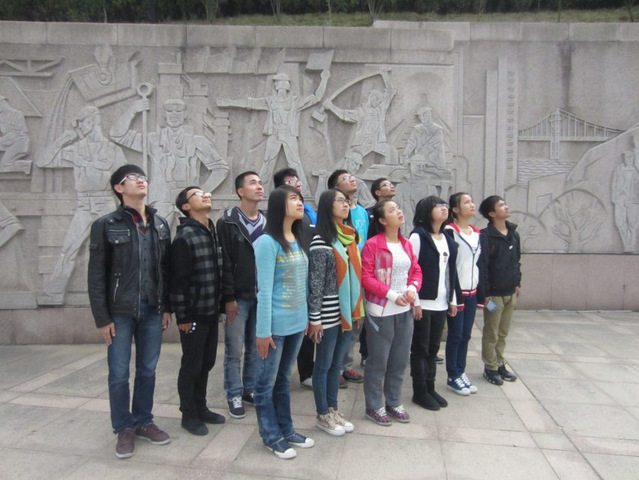 在麒麟山公园,我们一起瞻仰了革命先烈,向那些在战争中奉献生命的革命英雄致以最崇高的敬意,同时我院学子通过学习也对马克思主义中国化最新理论成果有了进一步的了解。最后我院学生会全体一起去往了莘口中学,向莘口中学的学生宣传了马克思主义中国化最新理论结果情况,通过PPT的演示,革命英雄照片的展示,革命英雄生平事迹的讲述,以及通过学习后,对中学生进行相关内容的提问。