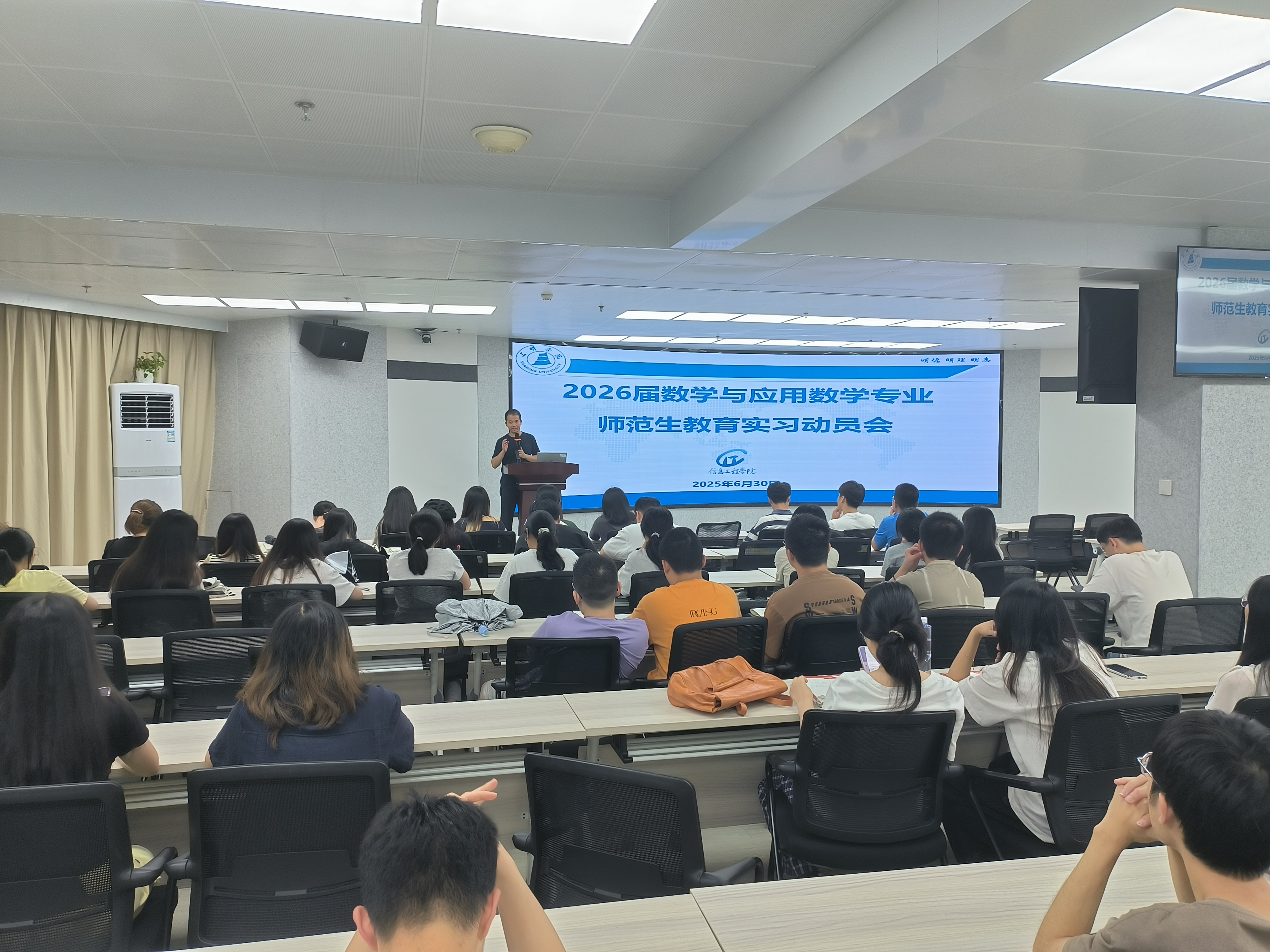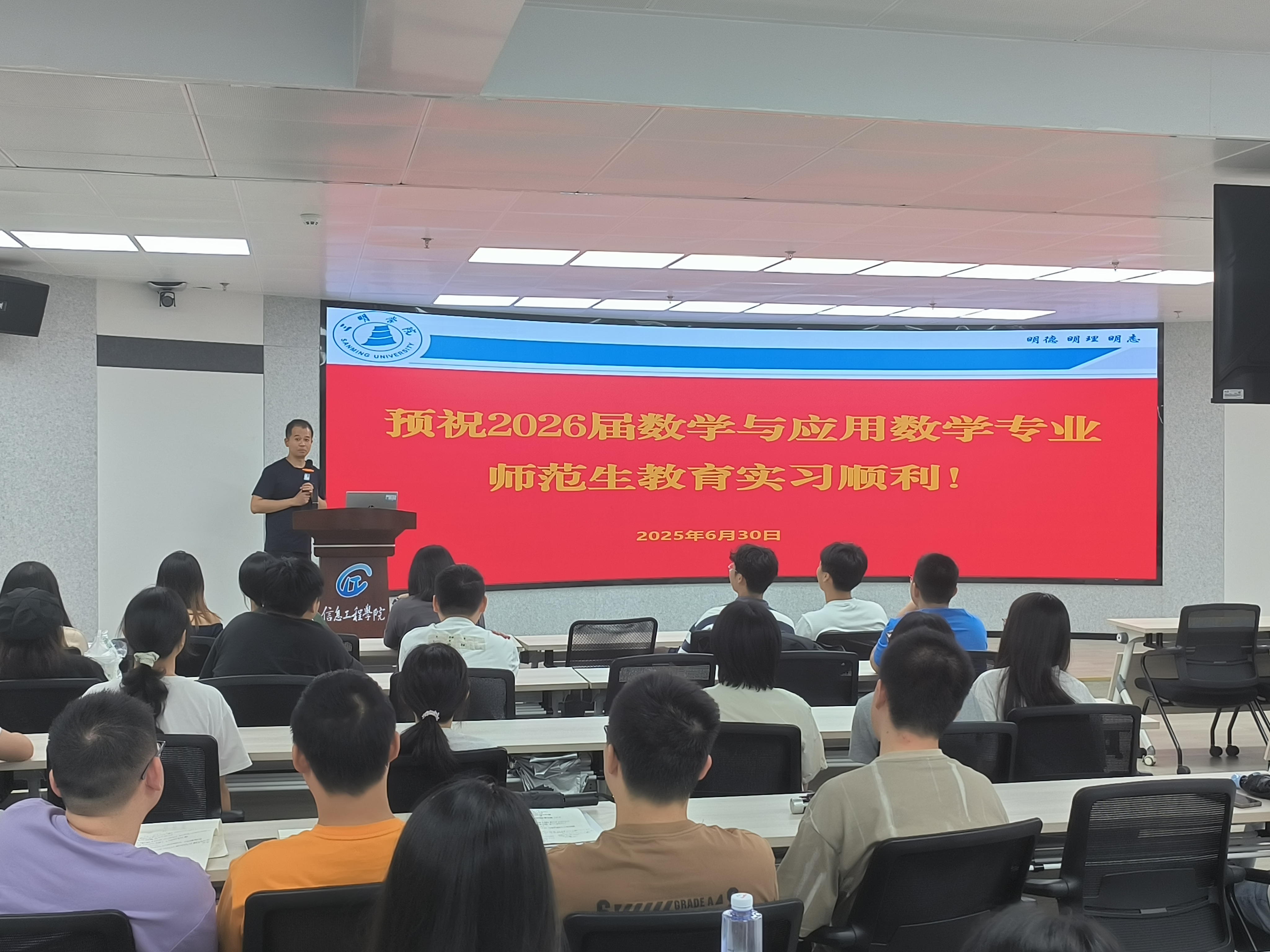2025 年 6 月 30 日,信息工程学院在知新楼 208 顺利召开数学与应用数学专业(师)2026 届师范生教育实习动员会。学院领导、实习指导教师及 56 名应届师范生齐聚现场,会议由应用数学系主任梁明杰主持。