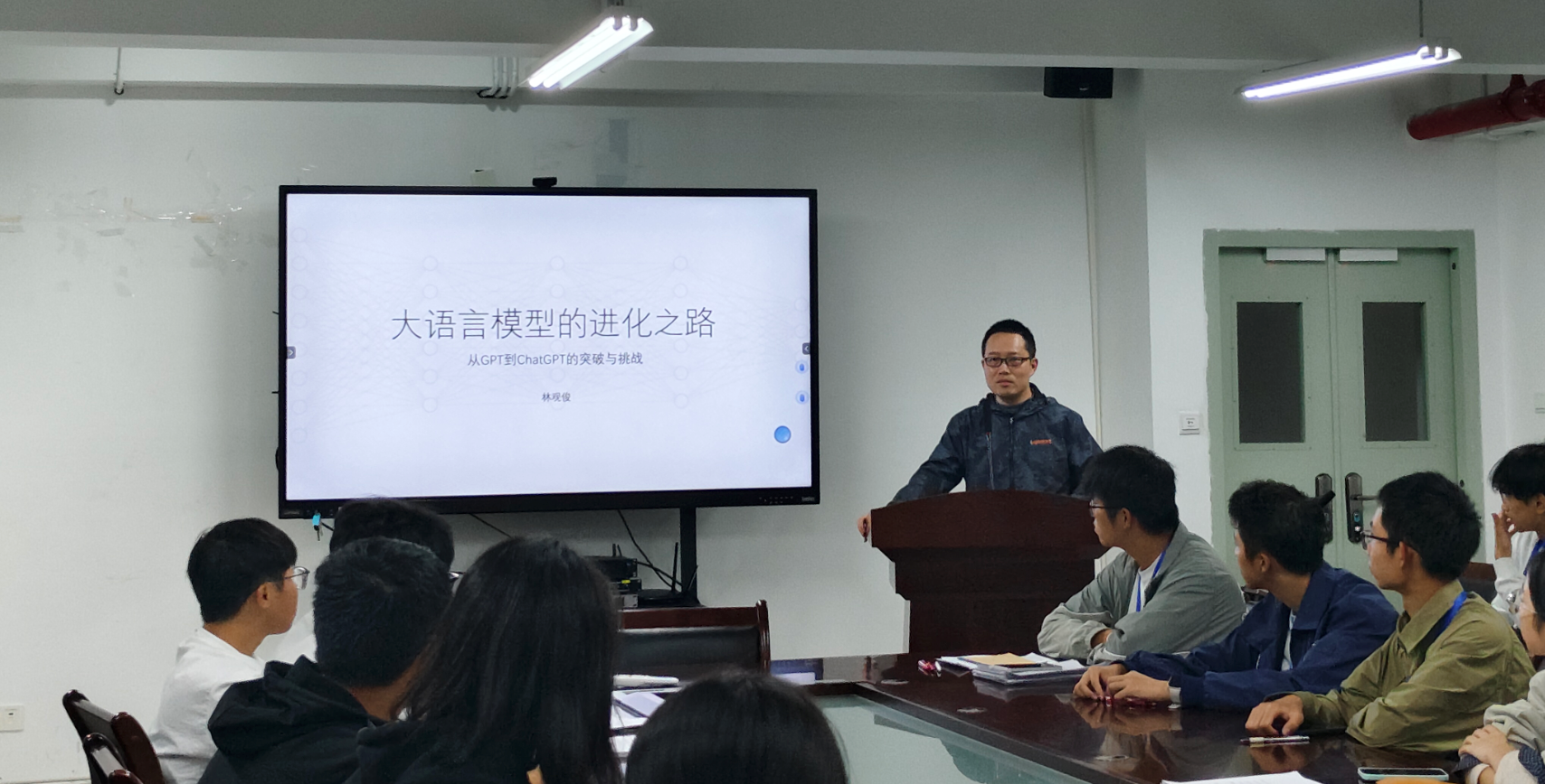 为促进前沿学科的交叉融合,拓展师生的学术视野,信息工程学院于2025年11月7日晚7点在知新楼1419会议室举办了以“人工智能与光电技术”为主题的前沿学术报告会。计算机科学与技术系的林观俊副教授与物联网工程系的郑建城副教授分别就引爆全球热潮的大语言模型与精密的超快光纤激光技术两大前沿领域作报告。