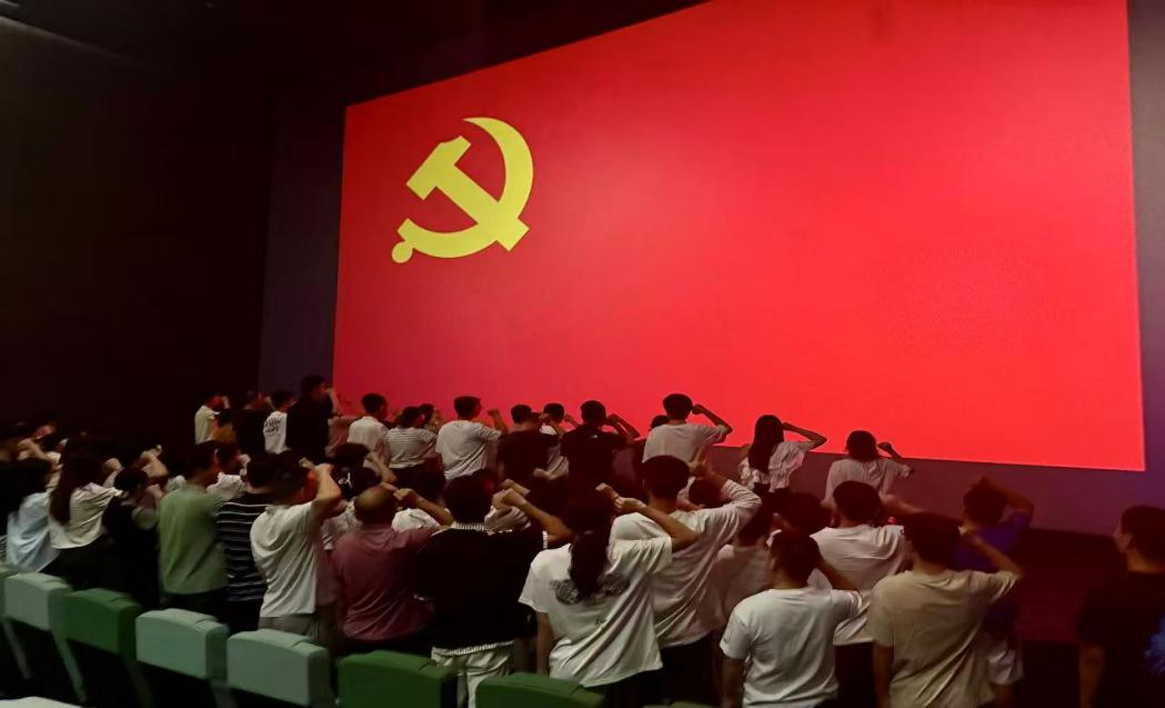 影片结束后,全体党员面向党旗庄严列队,举起右拳,齐声宣誓,铿锵有力的誓言回荡在观影厅内,既是对革命先烈的深切缅怀,更是对初心使命的坚定践行。随后,师生党员围绕“新时代党员使命担当”交流感悟,学生党员郑学铭表示:“黄继光扑向枪眼的瞬间,我攥紧了拳头—— 他明知危险却义无反顾,这份担当太震撼了。战士们‘不服输、不怕难’的精神,正是我们攻克专业难题的动力,未来要以过硬技术为国家科技发展出力。”