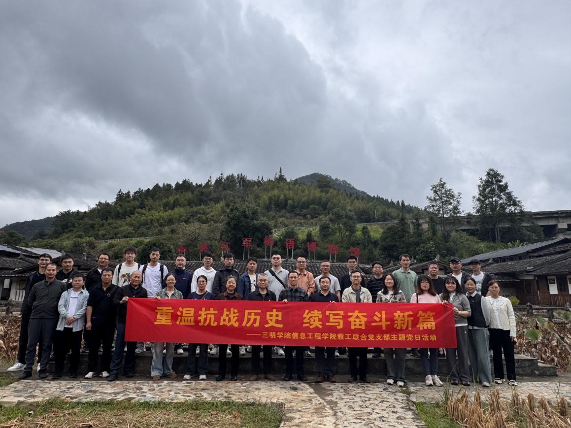 为纪念中国人民抗日战争暨世界反法西斯战争胜利80周年,深入学习贯彻党的二十届四中全会精神,信息工程学院教工党支部于2025年11月9日赴永安马洪村红军标语博物馆和吉山抗战文化遗址开展“重温抗战历史,续写奋斗新篇”主题党日活动。