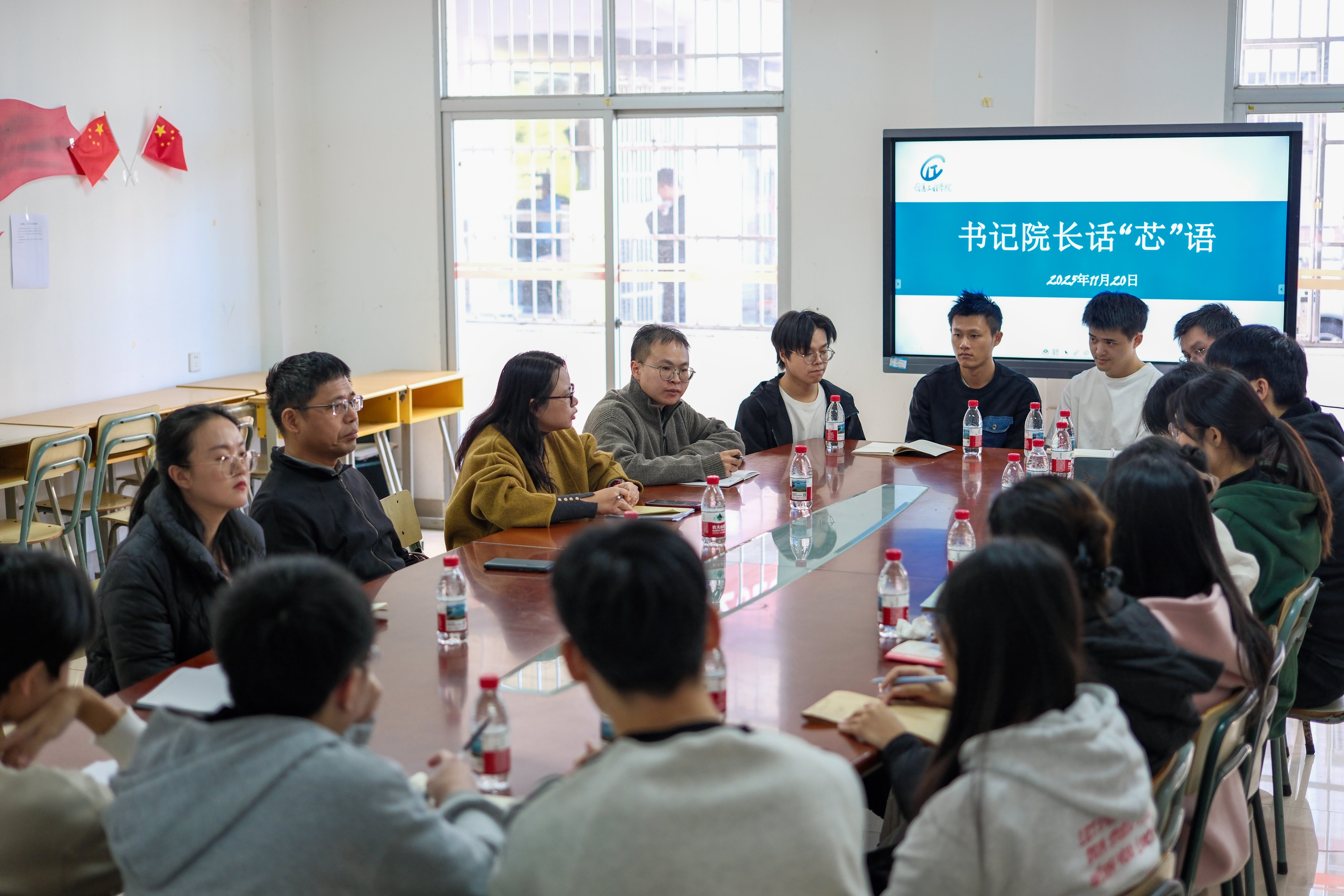 11 月 20 日下午,三明学院信息工程学院在一站式学生社区举办 “书记院长话‘芯’语”2025 届毕业班学生座谈会,学院领导、辅导员、毕业班学生代表参与。