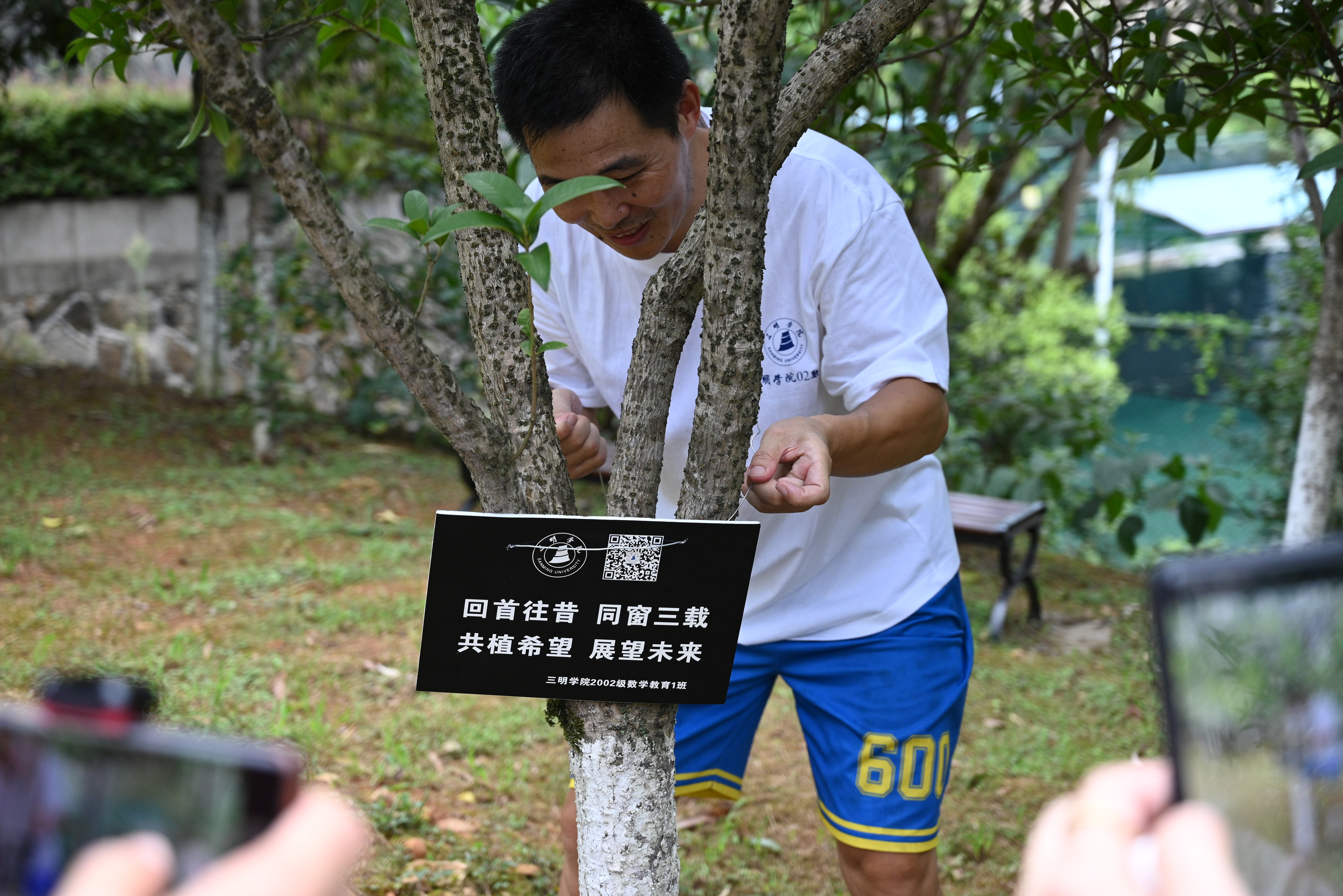 7月20日下午,校友们走进校史馆,讲解员悉心讲述校史变迁,泛黄的老照片、珍贵的校史文物,让大家沉浸式回顾了母校120多年来的跨越式发展。随后,在校友会会长赖锦隆的带领下,校友们移步至曾经的教学楼,走廊里的瓷砖、楼梯转角的窗台,唤醒了无数的青春回忆。赖会长对围在身边的校友们说:“母校永远是你们的‘娘家’,教室的门永远为你们敞开。常回来看看,不仅是看看老地方、见见老朋友,更要给学弟学妹们传经送宝,给母校的发展提提建议。”在教学楼旁,校友们在“校友林”认领香樟树,大家共同为“校友树”挂牌,留下独属他们的印记。