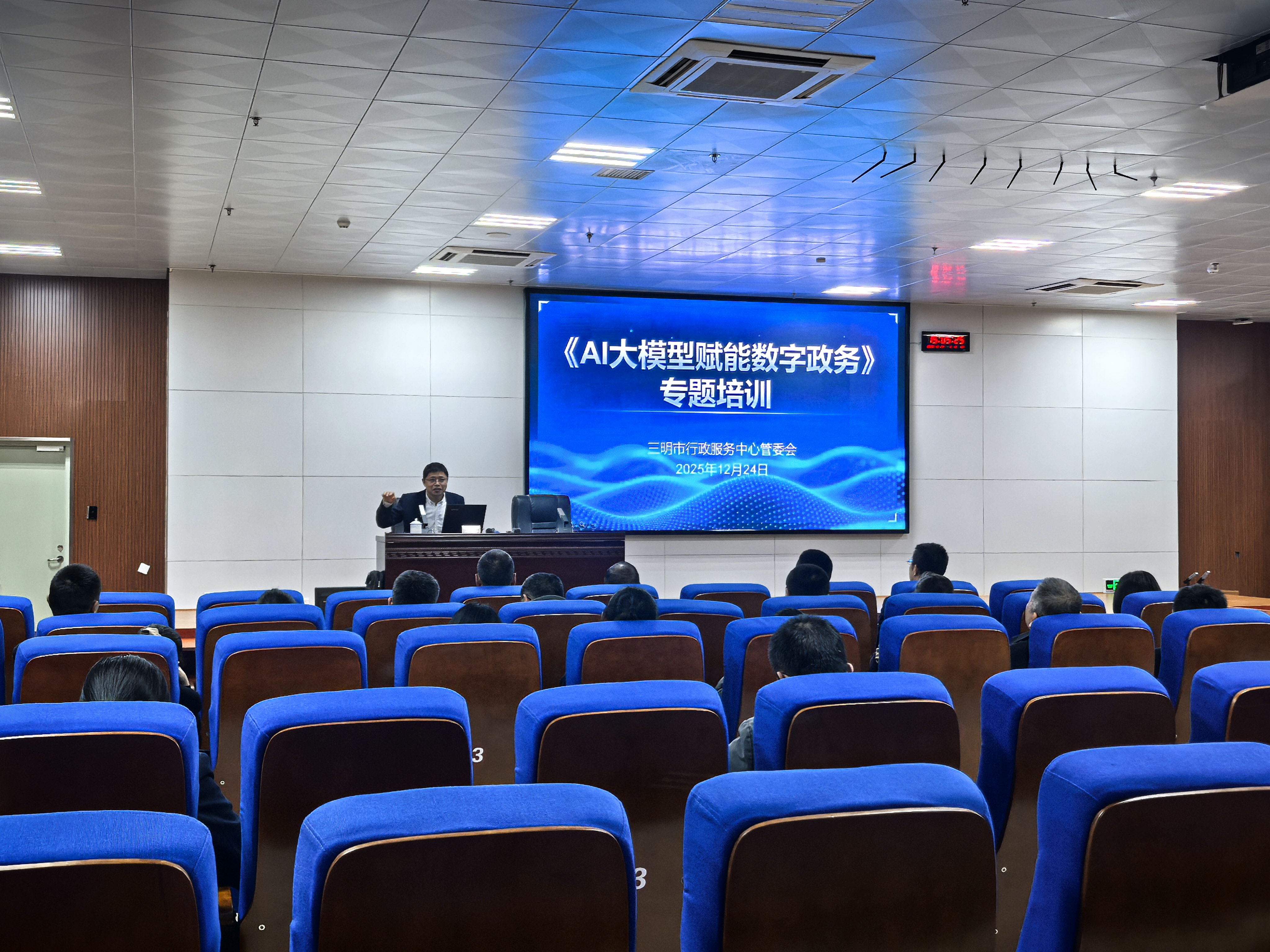 为深化校地协同合作,精准对接数字政府建设需求,12月24日下午,信息工程学院刘持标教授应邀赴三明市行政服务中心管委会,作《AI大模型赋能数字政务》专题讲座。三明市行政服务中心管委会相关领导、各科室负责人及业务骨干参加交流活动。