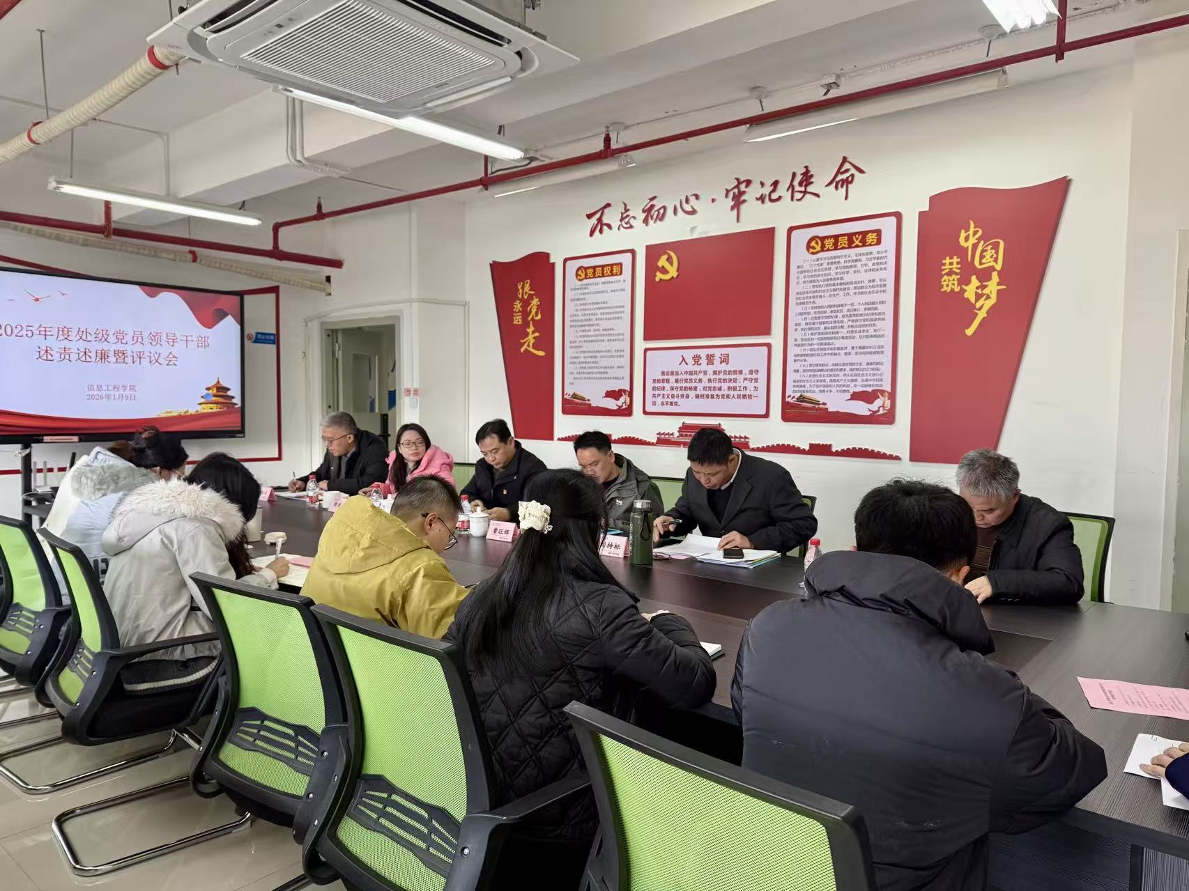 2026年1月9日上午,三明学院信息工程学院召开2025年度党员领导干部述责述廉评议大会。校纪委、学院领导班子成员、各党支部书记、系主任、科级干部及师生代表参会,会议由学院党委书记主持。